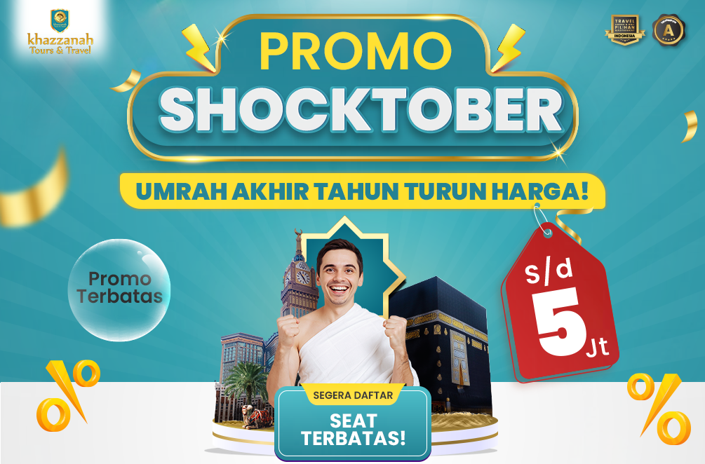 Jika Anda sedang mencari umrah murah akhir tahun 2025 yang tetap aman, nyaman, dan terpercaya, maka Khazzanah Tours adalah pilihan yang tepat. Dengan Promo Shocktober, Anda bisa hemat hingga 5 juta rupiah sekaligus mendapatkan fasilitas lengkap.
